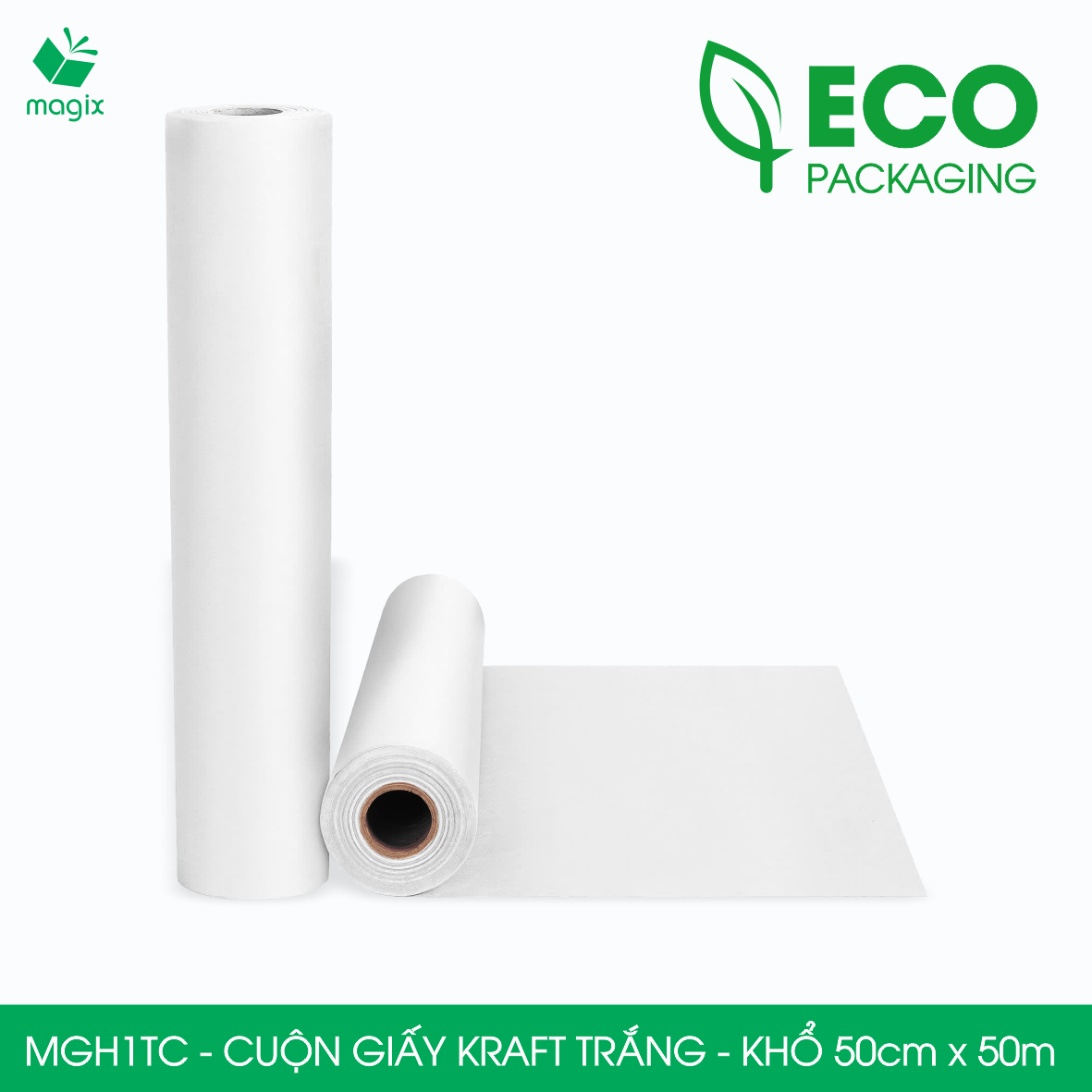✨MGH1TC - 50cm x 50m - Cuộn giấy Kraft Trắng gói hàng, giấy gói quà, giấy lót | Magix Packaging