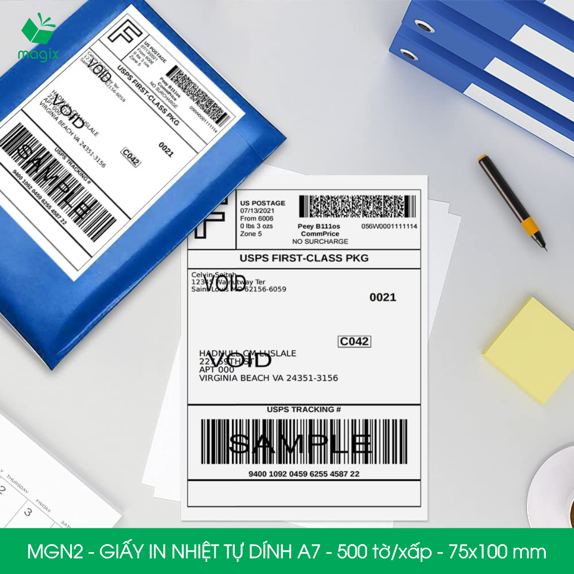"ƯU ĐIỂM - Giấy có độ bám dính cao: In xong bóc ra dán ngay, dán được trên nhiều bề mặt: túi nilon, thùng carton, thủy tinh, nhựa, . - Giấy chống xước: Do in