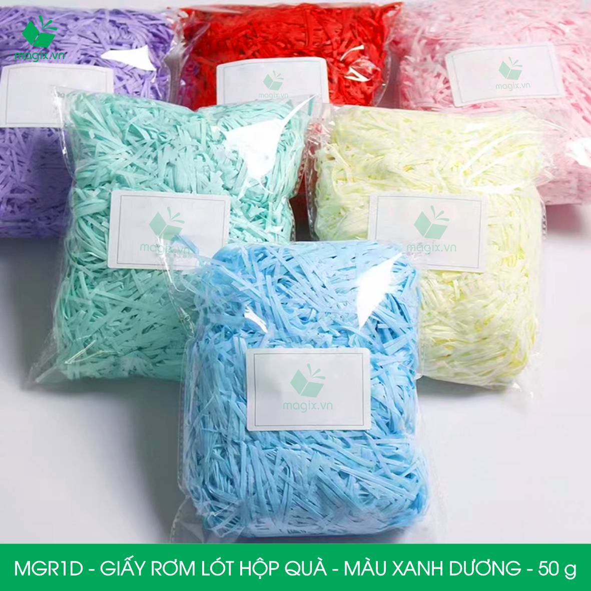 ✨MGR1D - 50g Giấy rơm lót hộp quà màu xanh dương - Giấy sợi rơm trang trí - Giấy vụn chống sốc