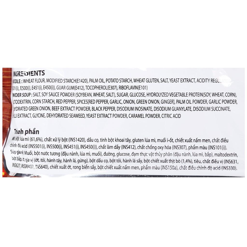 Súp gia vị: Muối i-ốt, đường, bột chiết xuất thịt bò, chiết xuất tảo biển, glucose, bột nước tương, chiết xuất bò, bột gia vị, tinh bột khoai tây,