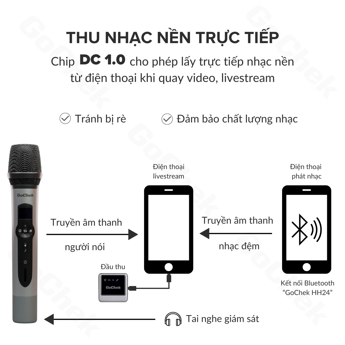 ✨Mic hát karaoke không dây GoChek GC - HH24, Micro karaoke online/ phòng họp/ Karaoke trên ôtô, kết nối đa thiết bị và mọi loại loa - Hàng chính hãng