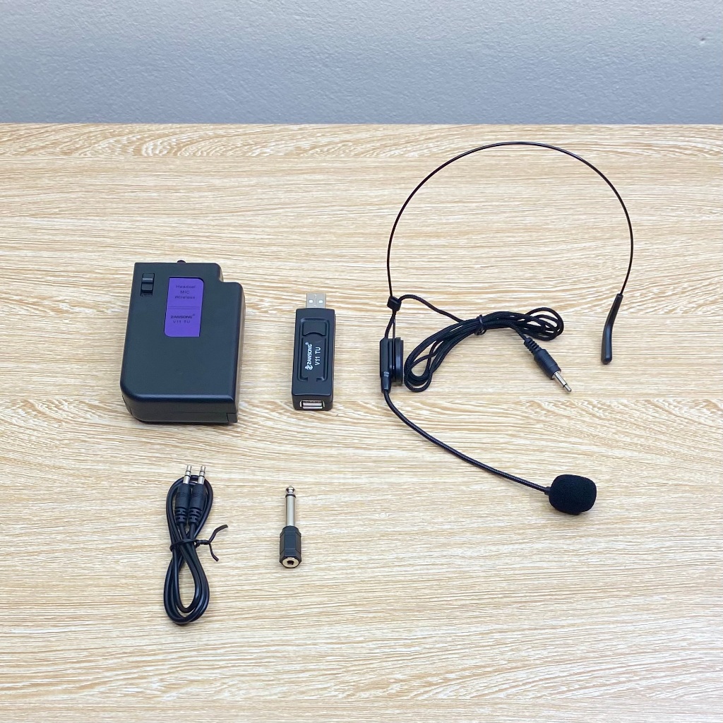 Micro không dây V11 cắm cổng USB mic quàng tai cho amply, loa có sẵn, loa kéo, loa trợ giảng, thiết bị âm thanh, mic cho điện thoai ghi âm, máy Biến loa trợ giảng có dây thành không dây. Sử dụng trong giảng dạy trường học, hướng dẫn viên du lịch, phòng học
