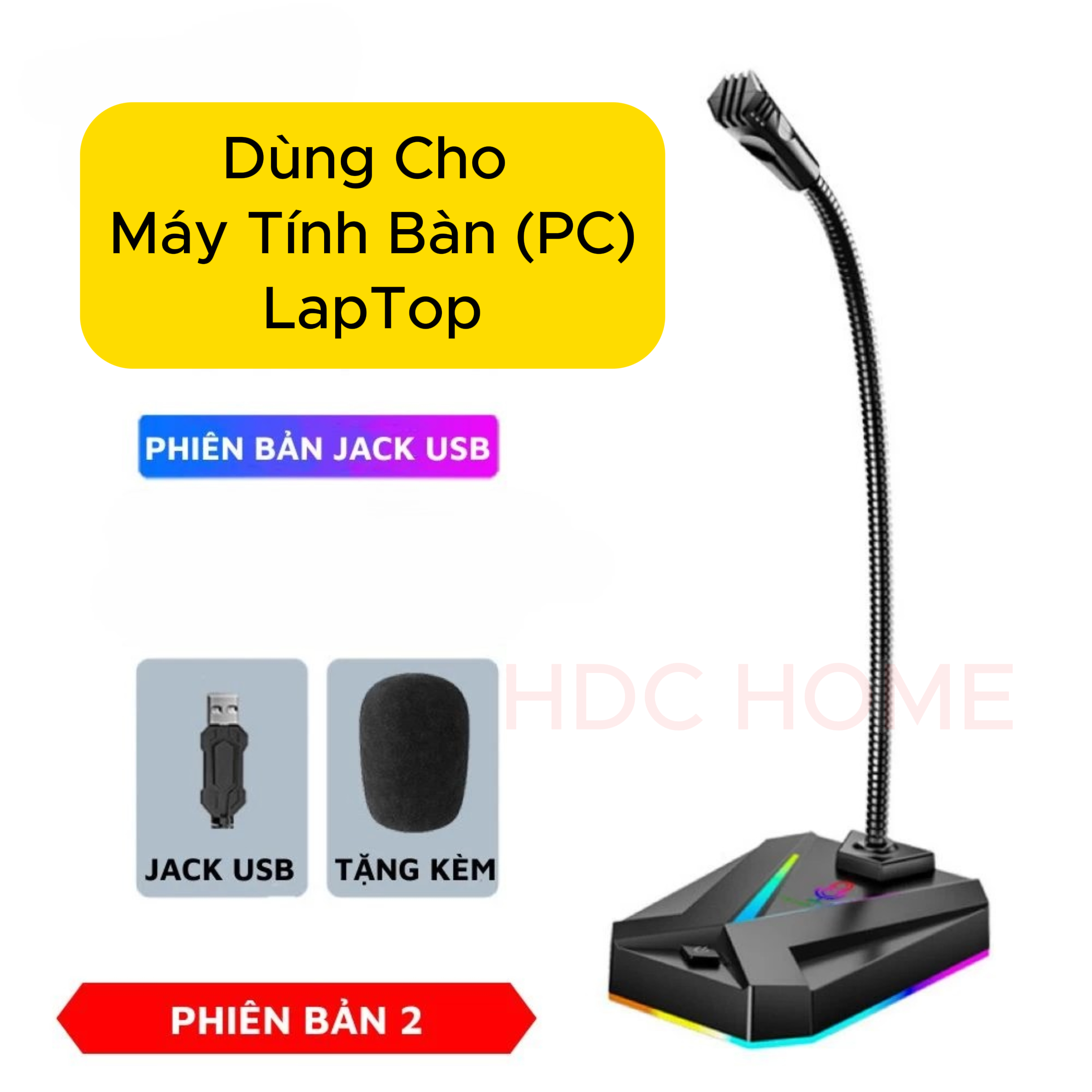 ✨Micro Máy Tính, Laptop Có Jack 3.5mm và USB, Dải LED, Thu Âm 360 Lọc Tạp Âm Tốt Cho Học Tập, Thuyết Trình, Chơi Game- Hàng Chính Hãng