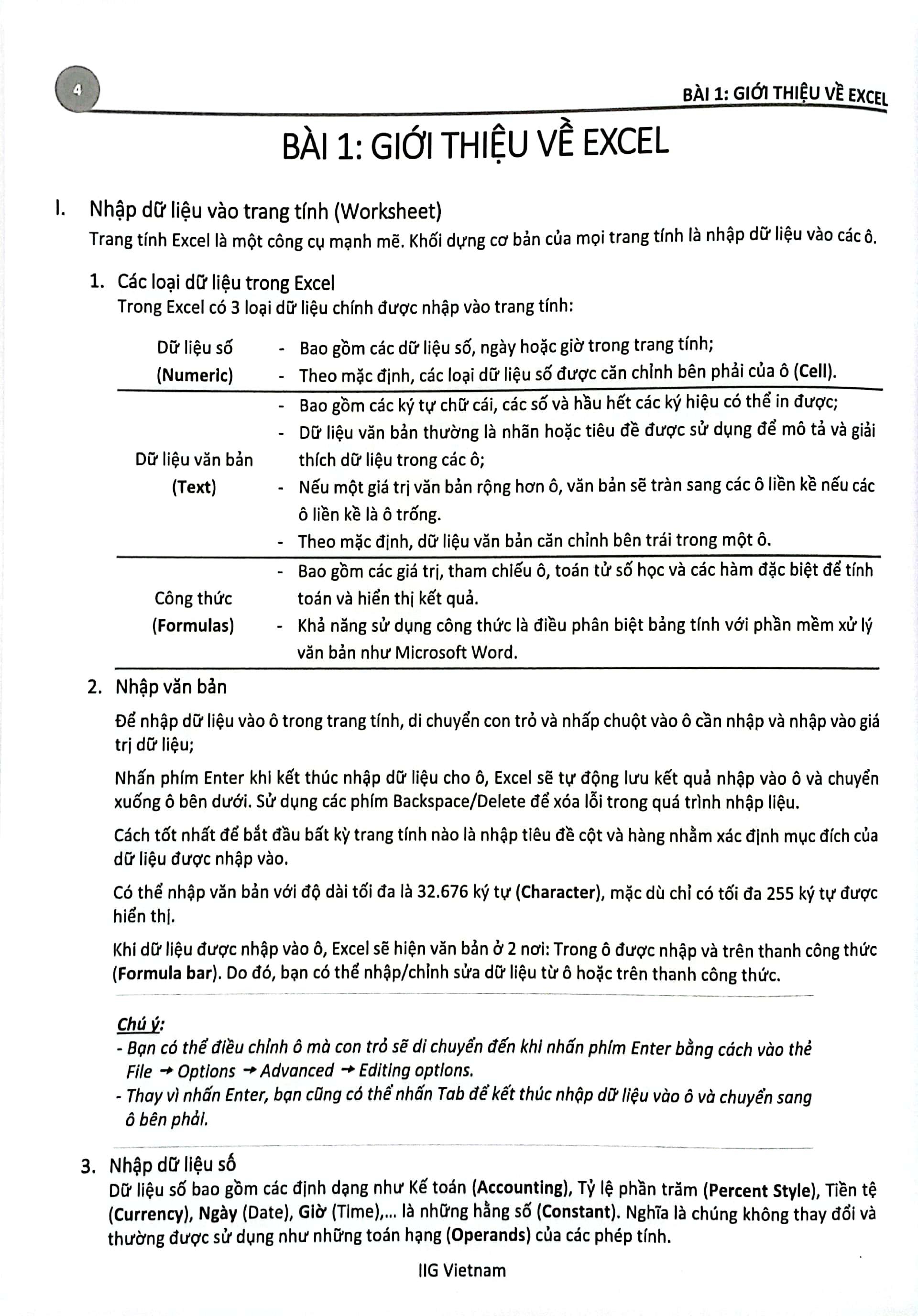 Sách MOS Excel 2019 được chia thành nhiều bài học, mỗi bài học đề cập đến một chủ đề cụ thể, bao gồm: