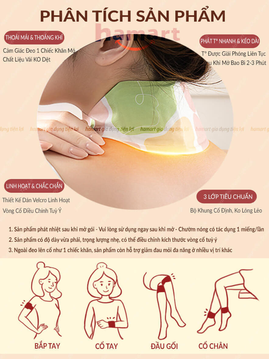 ✨Miếng Dán Cổ Vai Gáy Hamart Đai Chườm Nóng Xông Hơi Nhiệt Giảm Đau Thư Giãn Hiệu Quả Tiện Lợi