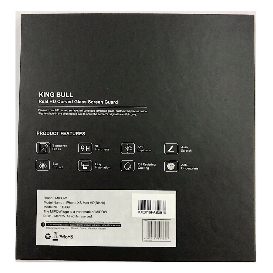 ✨Miếng Dán Cường Lực Màn Hình Cho Iphone Xs Max Hiệu MIPOW King Bull 2 Trong 1 - Hàng Nhập Khẩu