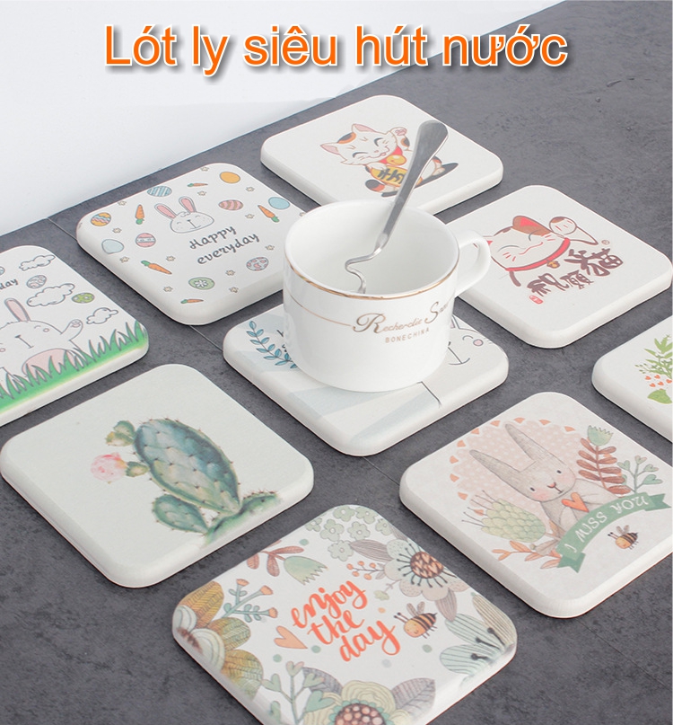 Đế lót ly thấm hút nước rất tốt, lót cốc bằng gốm cao cấp nhiều mẫu mã