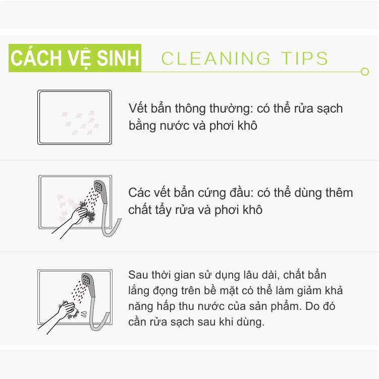 - Để giữ được hiệu quả hút nước của sản phẩm, nên phơi khô sản phẩm sau mỗi lần sử dụng.
