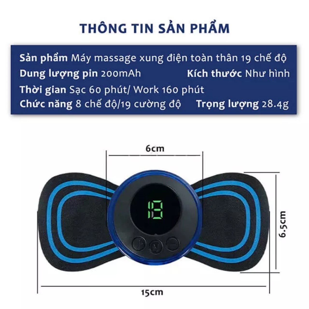 Miếng Massage Xung Điện Cổ Vai Gáy, Bắp Tay, Lưng Bằng Sung Điện đỡ đau Nhức Hiệu Qủa -Máy mat sa thân hình 10 Chế Độ - HÀNG CHÍNH HÃNG MINIIN