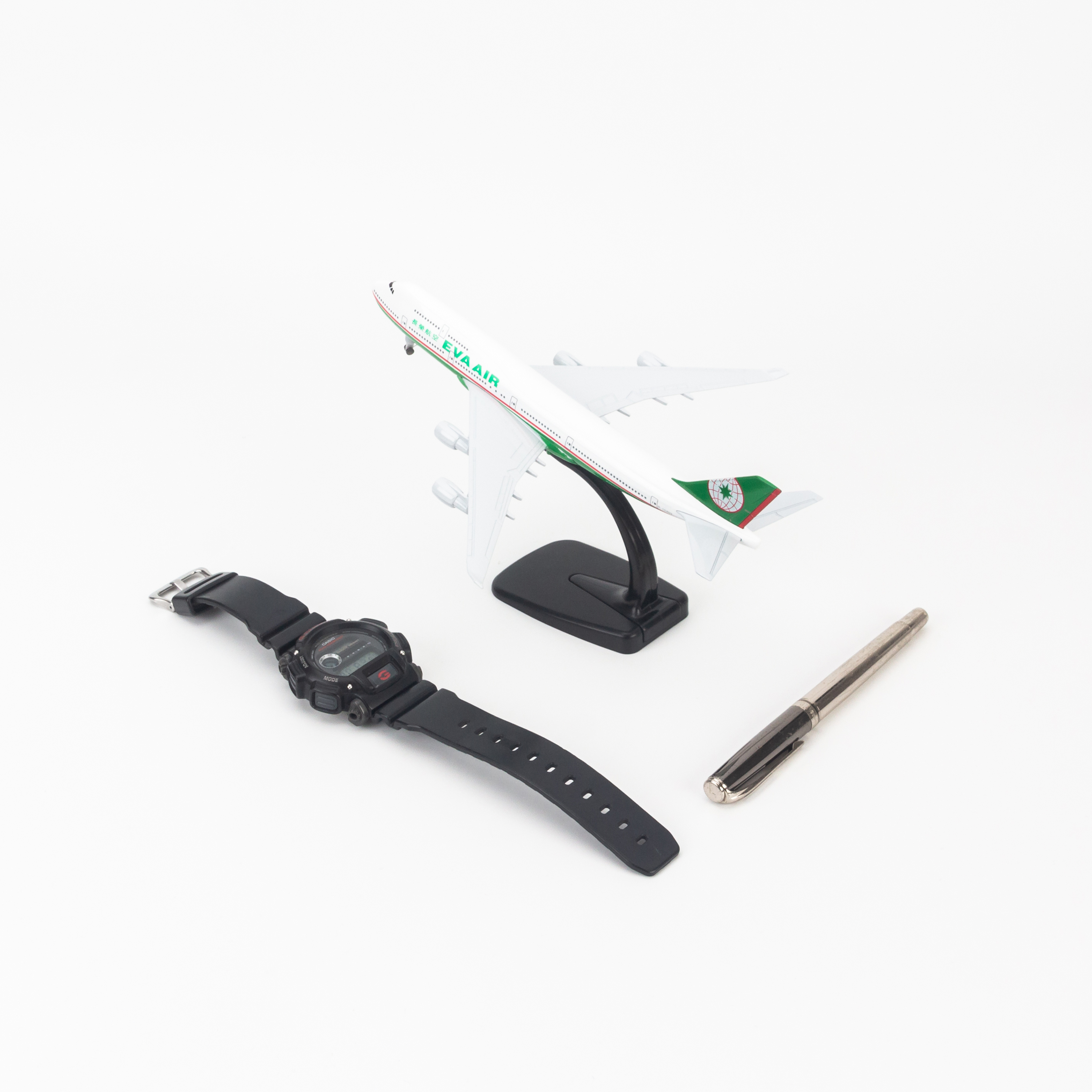 Phụ kiện sản phẩm: Đi kèm theo mô hình máy bay EVA Airways là một cái đế nhựa được sơn khá kĩ càng và bóng bẩy, phần thân đế và phần đế có thể tháo lắp được để vệ sinh sản phẩm dễ dàng hơn.