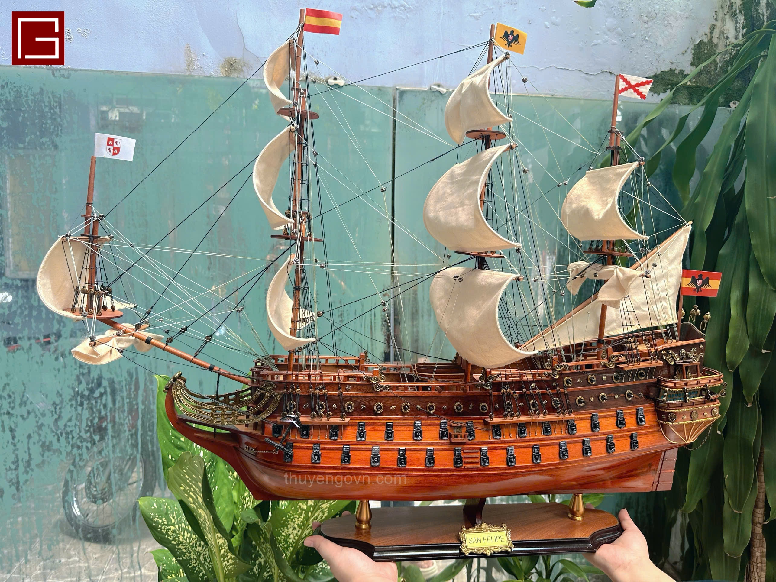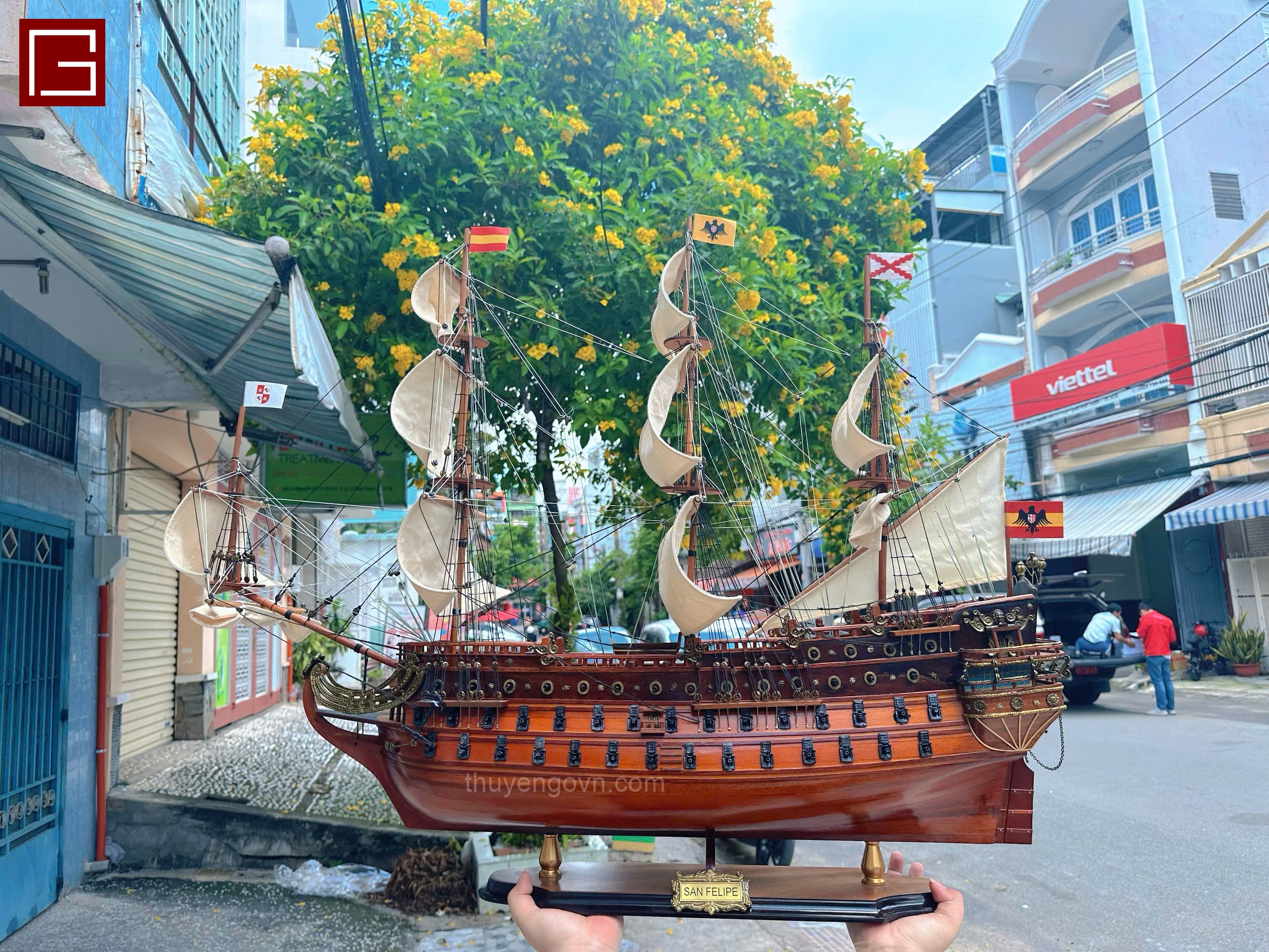 [Giá xưởng] Mô Hình Thuyền Gỗ Trang Trí Phong Thủy Dạng Thuyền Cổ SAN FELIPE 40CM Chính Hãng, Hàng Xuất Khẩu Chất Lượng Cao