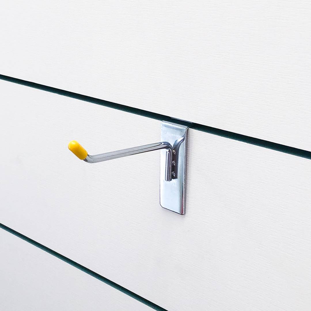 Móc đơn Slatwall là phụ kiện không thể thiếu đi kèm với bảng gỗ xẻ rãnh Slatwall & Dash Panel giúp mang đến sự gọn gàng & chuyên nghiệp cho hàng hóa trưng bày. Móc Slatwall được làm bằng thép và xi mạ niken sáng bóng cao cấp. Phù hợp sử dụng với các sản phẩm có kích cỡ từ nhỏ tới trung bình. Sản phẩm được cung cấp với 4 kích thước chiều dài là: 10cm | 15cm | 20cm | 30cm.
