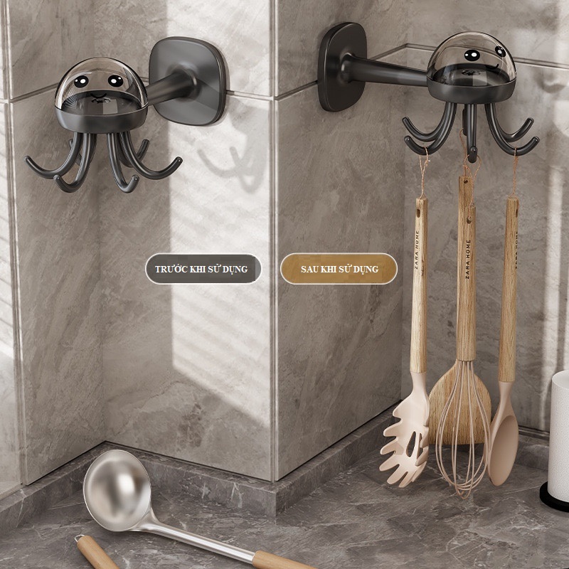 ✨Móc Treo Đồ Dáng Tường Hình Bạch Tuộc Xoay 360