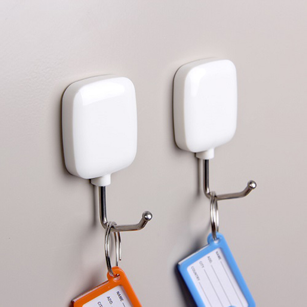 Bộ gồm 2 móc hút nam châm dính KM 520 màu trắng, dính chắc trên bề mặt kim loại, chịu tải 1kg
