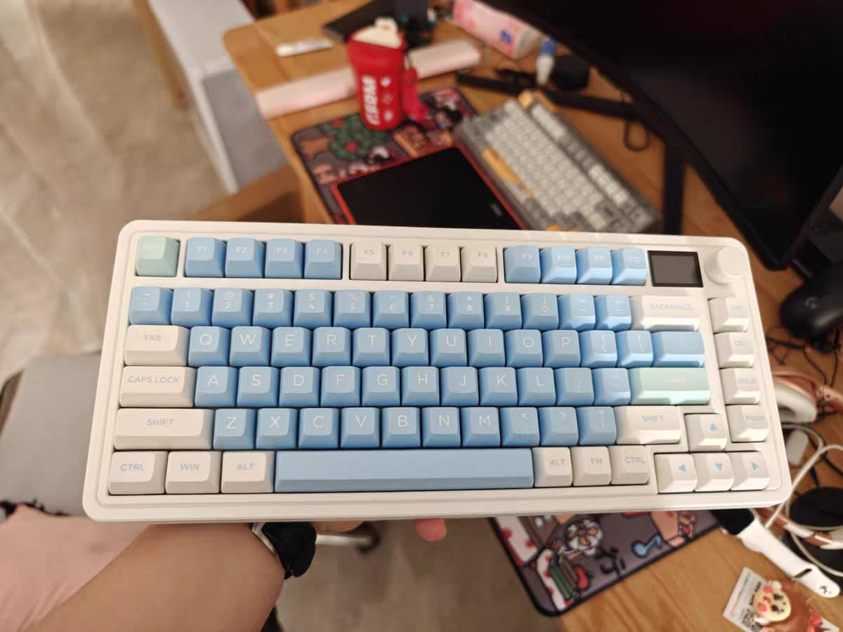 CMK75SAM được hãng FL·Esports vô cùng ưu ái. hãng đã mạnh dạn trạng bị thêm cho em bàn phím này màn hình hiển thị TFT đầy màu sắc. Màn hình TFT này sẽ hiển thị các cài đặt khác nhau như ngày, giờ, chế độ hệ thống đang hoạt động, chế độ kết nối,…Nó cũng có thể được tùy chỉnh với các hình ảnh và hoạt ảnh gif khác nhau. Người dùng có thể tải tối đa 5 hình ảnh và 1 ảnh động gif trên cấu hình bàn phím.