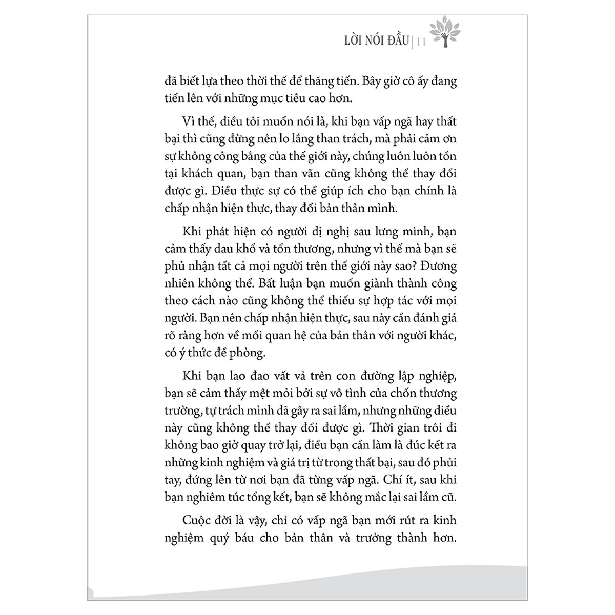 Nhưng mong bạn suy nghĩ kĩ, mỗi khi bạn gặp phải khó khăn hoặc vấp ngã, ngoài việc cảm thấy đau khổ về mặt tinh thần, bạn còn học được điều gì? Tôi dám khẳng định rằng bạn đã có được kinh nghiệm, và khi đã lĩnh hội, bạn sẽ không vấp ngã lại nơi bạn đã từng ngã. Đây chính là sự trưởng thành.