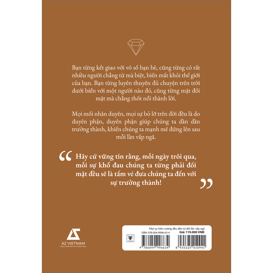 Mong sao cho mọi khó khăn trên chặng đường đời rồi sẽ đưa ta đên một mảnh đất đầy hoa nở ngọt ngào, sự trưởng thành khi kiên cường vượt qua hết thảy sẽ khiến bạn hạnh phúc và mãn nguyện với kết quả cuối cùng. Mong cuốn sách “Mọi sự kiên cường đều đến từ đôi lần vấp ngã” có thể gặp gỡ và đồng hành bên bạn trên đường đời.