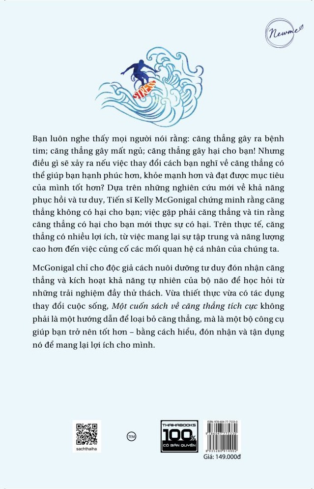 Bạn luôn nghe thấy mọi người nói rằng: căng thẳng gây ra bệnh tim; căng thẳng gây mất ngủ; căng thẳng gây hại cho bạn! Nhưng điều gì sẽ xảy ra nếu việc thay đổi cách bạn nghĩ về căng thẳng có thể giúp bạn hạnh phúc hơn, khỏe mạnh hơn và đạt được mục tiêu của mình tốt hơn? Dựa trên những nghiên cứu mới về khả năng phục hồi và tư duy, Tiến sĩ Kelly McGonigal chứng minh rằng căng thẳng không có hại cho bạn; việc gặp phải căng thẳng và tin rằng căng thẳng có hại cho bạn mới thực sự có hại. Trên thực tế, căng thẳng có nhiều lợi ích, từ việc mang lại sự tập trung và năng lượng cao hơn đến việc củng cố các mối quan hệ cá nhân của chúng ta. McGonigal chỉ cho độc giả cách nuôi dưỡng tư duy đón nhận căng thẳng và kích hoạt khả năng tự nhiên của bộ não để học hỏi từ những trải nghiệm đầy thử thách. Vừa thiết thực vừa có tác dụng thay đổi cuộc sống, Một cuốn sách về căng thẳng tích cực không phải là một hướng dẫn để loại bỏ căng thẳng, mà là một bộ công cụ giúp bạn trở nên tốt hơn - bằng cách hiểu, đón nhận và tận dụng nó để mang lại lợi ích cho mình.