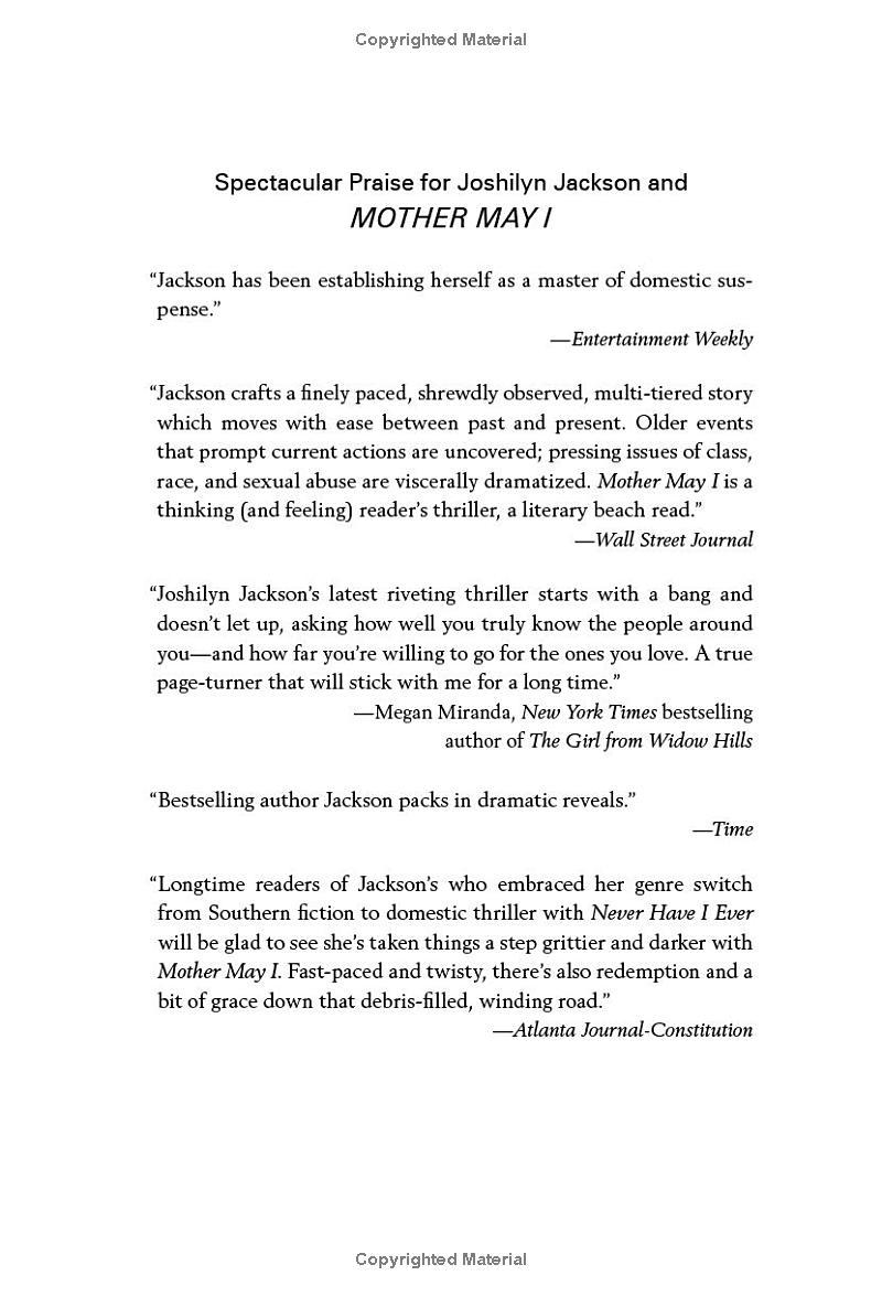 "Chilling, thought-provoking, and hauntingly written, Mother May I kept me on the edge of my seat with its breathless race against time." — Megan Miranda, New York Times bestselling author of The Girl from Widow Hills