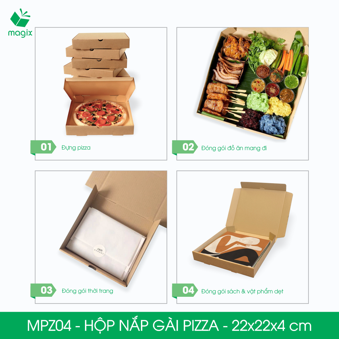 ✨MPZ04 - 22x22x4 cm - 60 Hộp nắp gài pizza đa dụng - Hộp nắp gập, hộp carton gói hàng, hộp quà