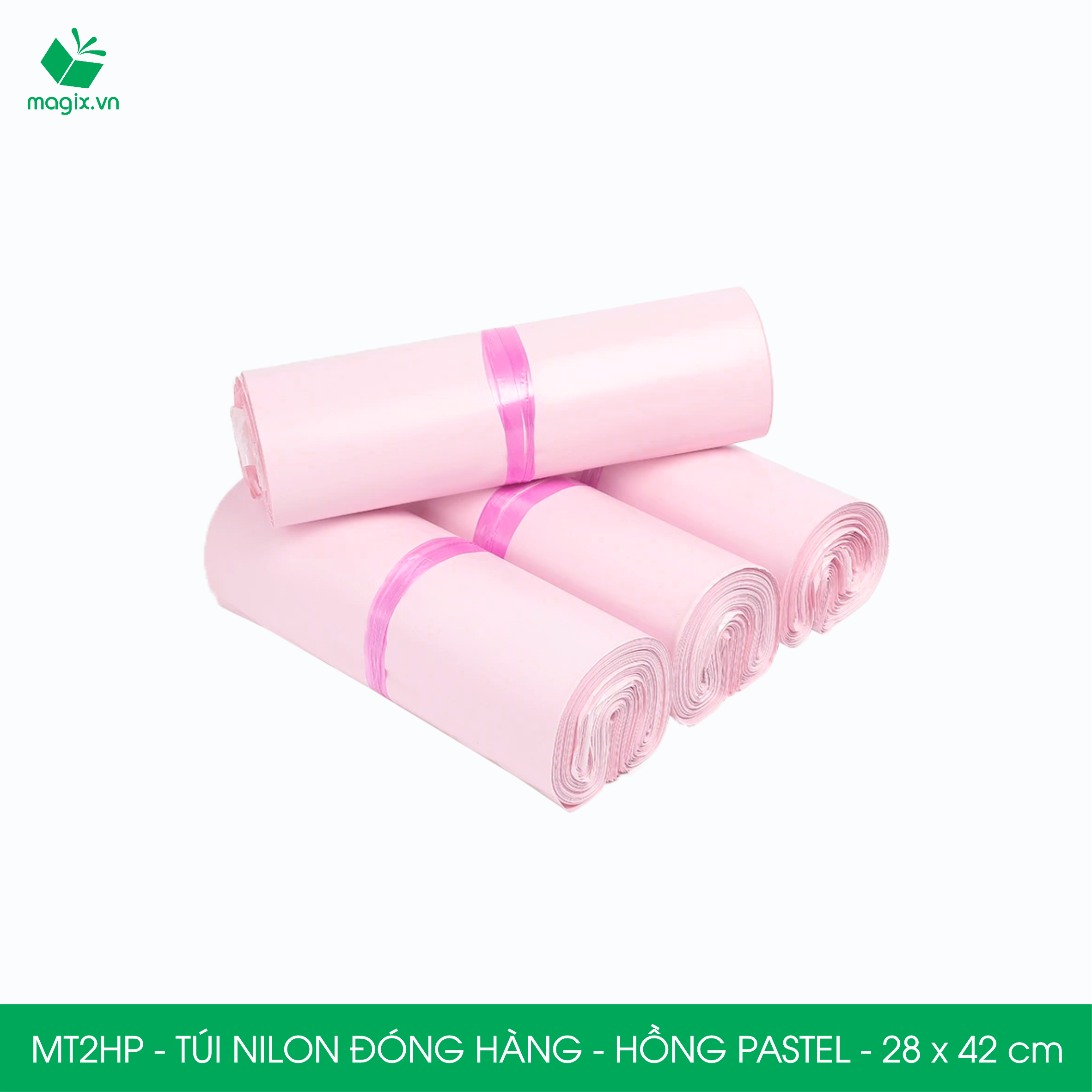 ✨MT2HP - 28x42 cm - Túi nilon gói hàng - 300 túi niêm phong đóng hàng màu hồng pastel
