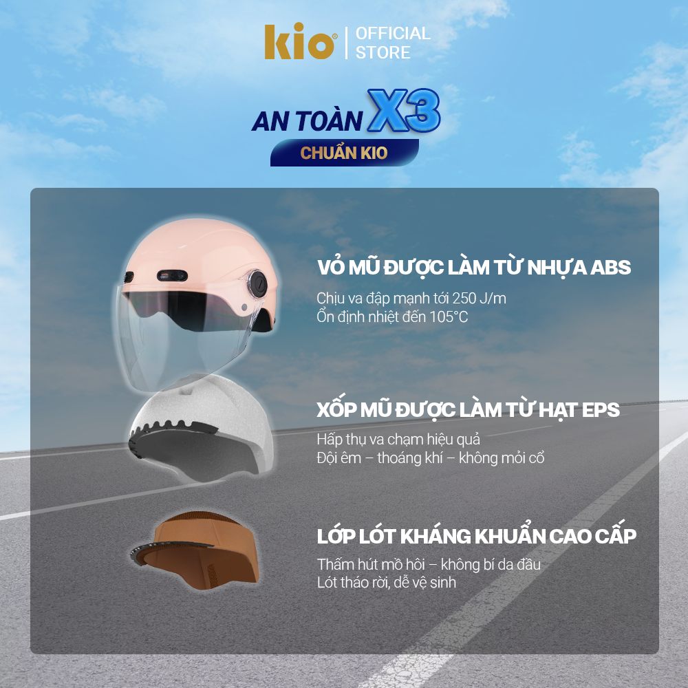Mũ Bảo Hiểm Nửa Đầu Kio SafeStyle Go KN03K, Kính Âm Phủ Nano Chống Tia UV, Lớp Lót Kháng Khuẩn. ️An toàn & thời trang trên từng hành trình Kio SafeStyle Go không đơn thuần