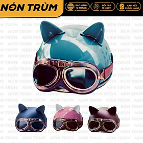 Mũ bảo hiểm nửa đầu Rona haly luxury kèm kính phi công đồng tặng tai mèo cho nam và nữ đi xe máy