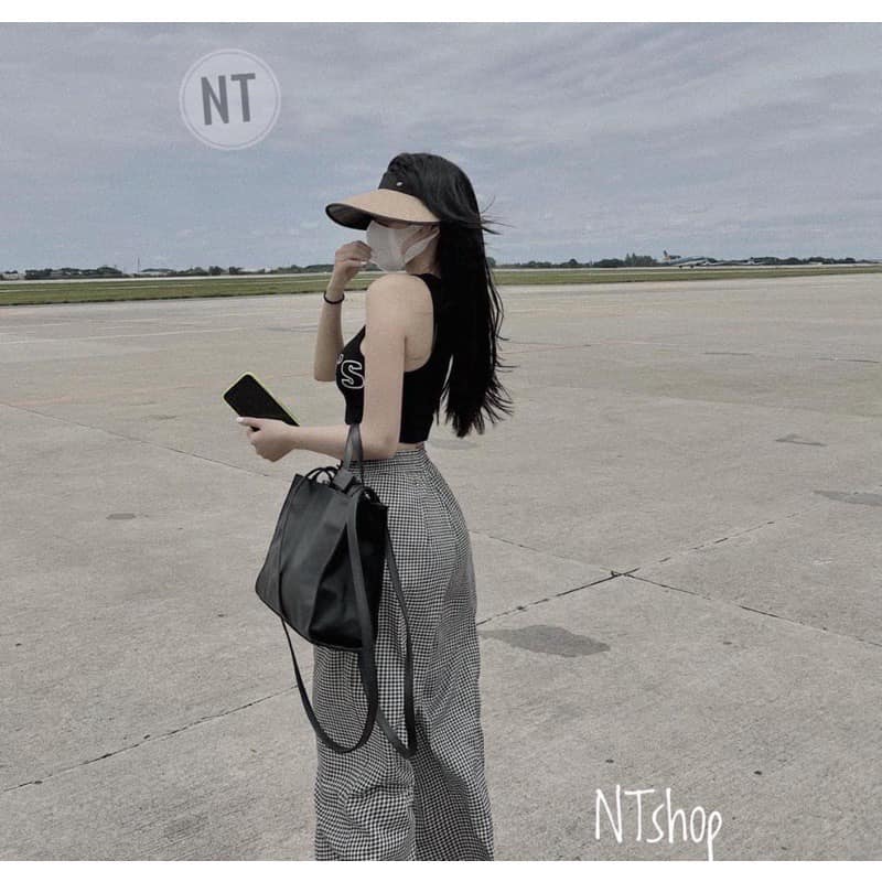 -Mũ chống nắng nửa đầu Hàn Quốc có nút đeo khẩu trang, nón vành rộng có túi để khẩu trang , dây rút điều chỉnh kích thước giúp chống nắng, chống gió, che nắng phong