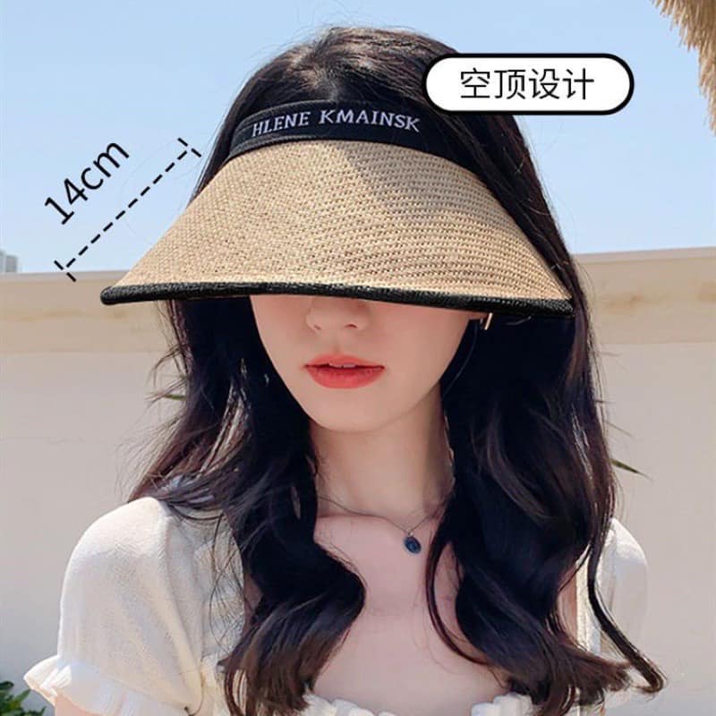 Mũ Cói Nửa Đầu Chống Nắng, Nón Đi Nắng Hở Chóp Vành Rộng Chống Tia UV 1. Thông tin sản phẩm - Chất liệu: cói tổng hợp - Màu sắc: nâu, kem, đen - Kích
