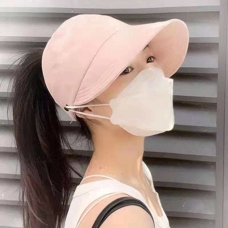 -Mũ chống nắng nửa đầu Hàn Quốc, nón vành rộng có nút đeo khẩu trang, mũ chống nắng buộc tóc đuôi ngựa