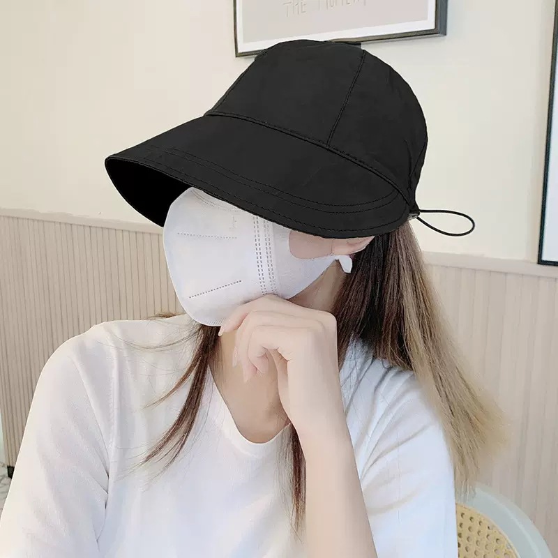 -Mũ chống nắng Hàn Quốc, Nón vành rộng có móc đeo khẩu trang, chất liệu vải Acrylic khô nhanh thoáng mát cho ngày Hè