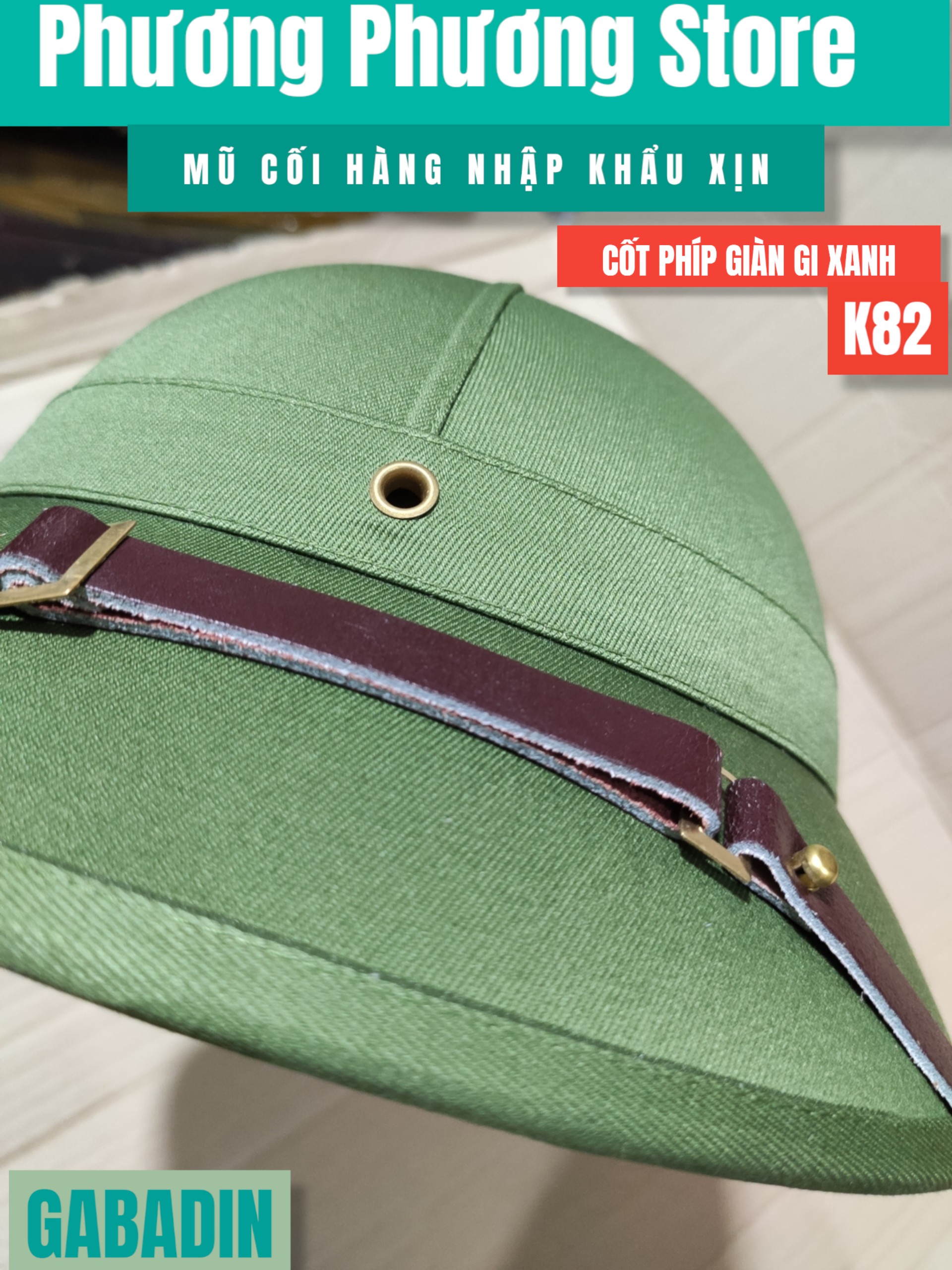 MŨ CỐI ARMY K82 MŨ CỐI XỊN VẢI BỌC GABADIN QUAI DA THẬT LÒNG CỐT PHÍP GIÀN GI XANH CHỊU MƯA CHỊU NẮNG CHỊU VA ĐẬP SHOP PHƯƠNG PHƯƠNG STORE BÁN SẢN PHẨM MŨ CỐI