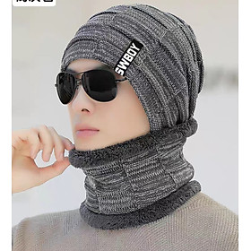 Mũ len nam nón len nam khăn choàng cổ thời trang Hàn Quốc Hàng nhập Chất len 2 lớp Bộ sản phẩm gồm nón và khăn y hình