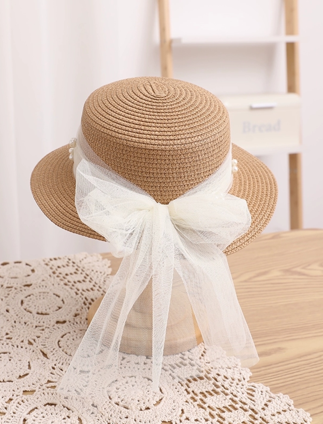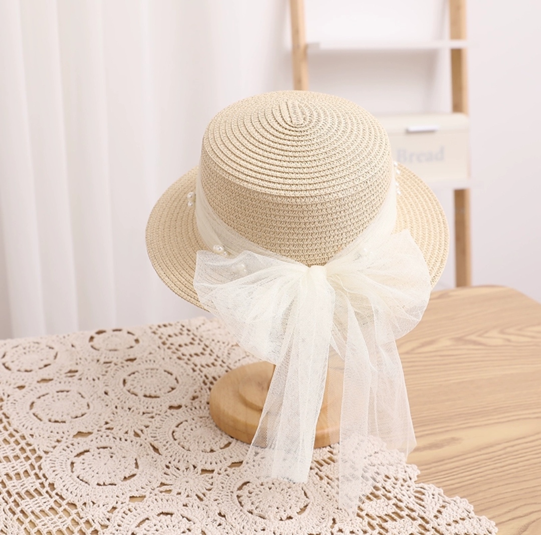 ✨Mũ nón đi biển vành nhỏ chóp bằng phối đai trắng ngọc trai nhân tạo chất liệu cói chống nắng thoáng mát thời trang Hàn Quốc Dona240607