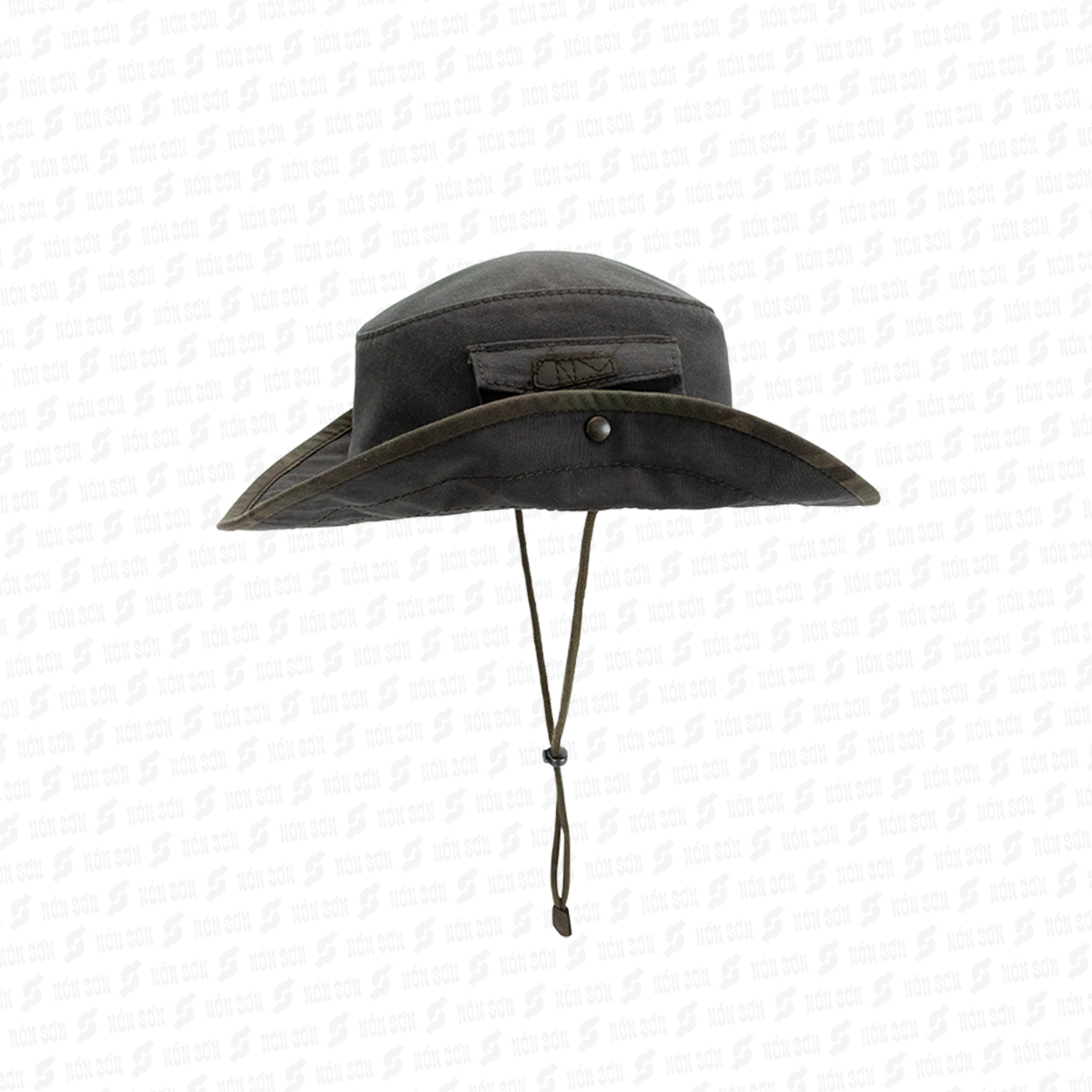 Vải Kaki dày dặn nhưng không nóng vì là 100%cotton. Có dây đeo không lo gió bay. Nút bấm kim loại 2 bên vành nón để bẻ lên cho ngầu luôn. Shop nhận thêu logo