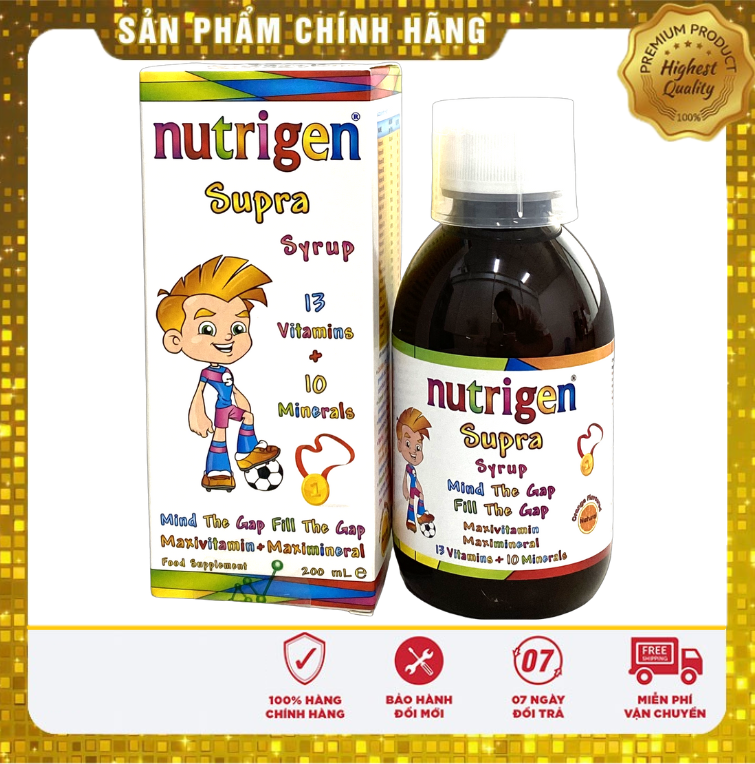 Công thức độc nhất của Nutrigen Supra Maxivitamin Maximineral Syrup cung cấp đến 13 vitamin và 10 khoáng chất thiết yếu giúp tăng cường sự phát triển, giúp trẻ lớn khỏe mạnh và hỗ trợ các chức năng của cơ thể.