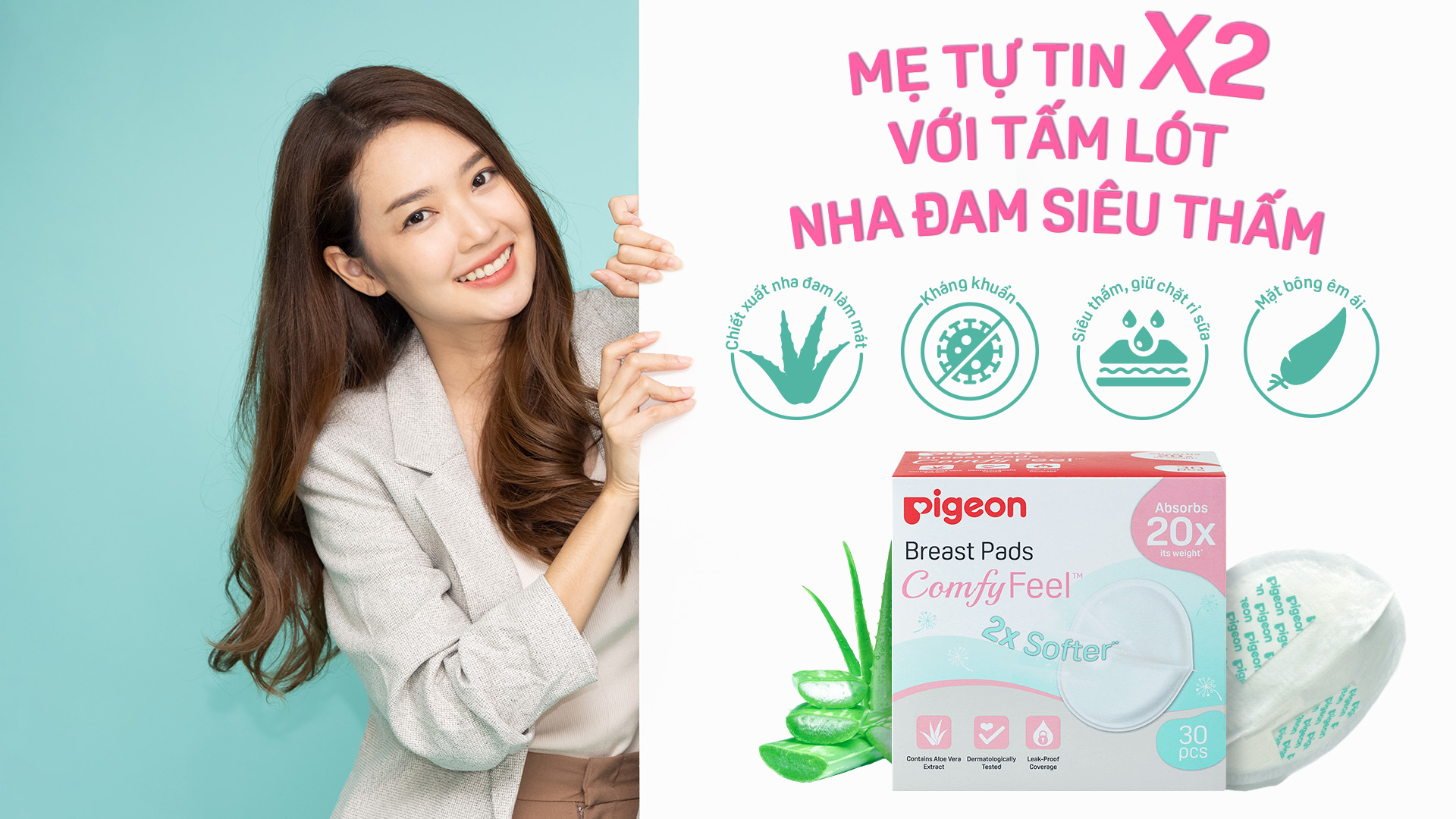 - Miếng lót thấm sữa Nha Đam Pigeon với chiết xuất nha đam cấp ẩm, làm dịu mát da, kháng khuẩn, siêu thấm và mềm mại, giữ cho Mẹ luôn khô thoáng và đảm bảo vệ sinh khi sử dụng.