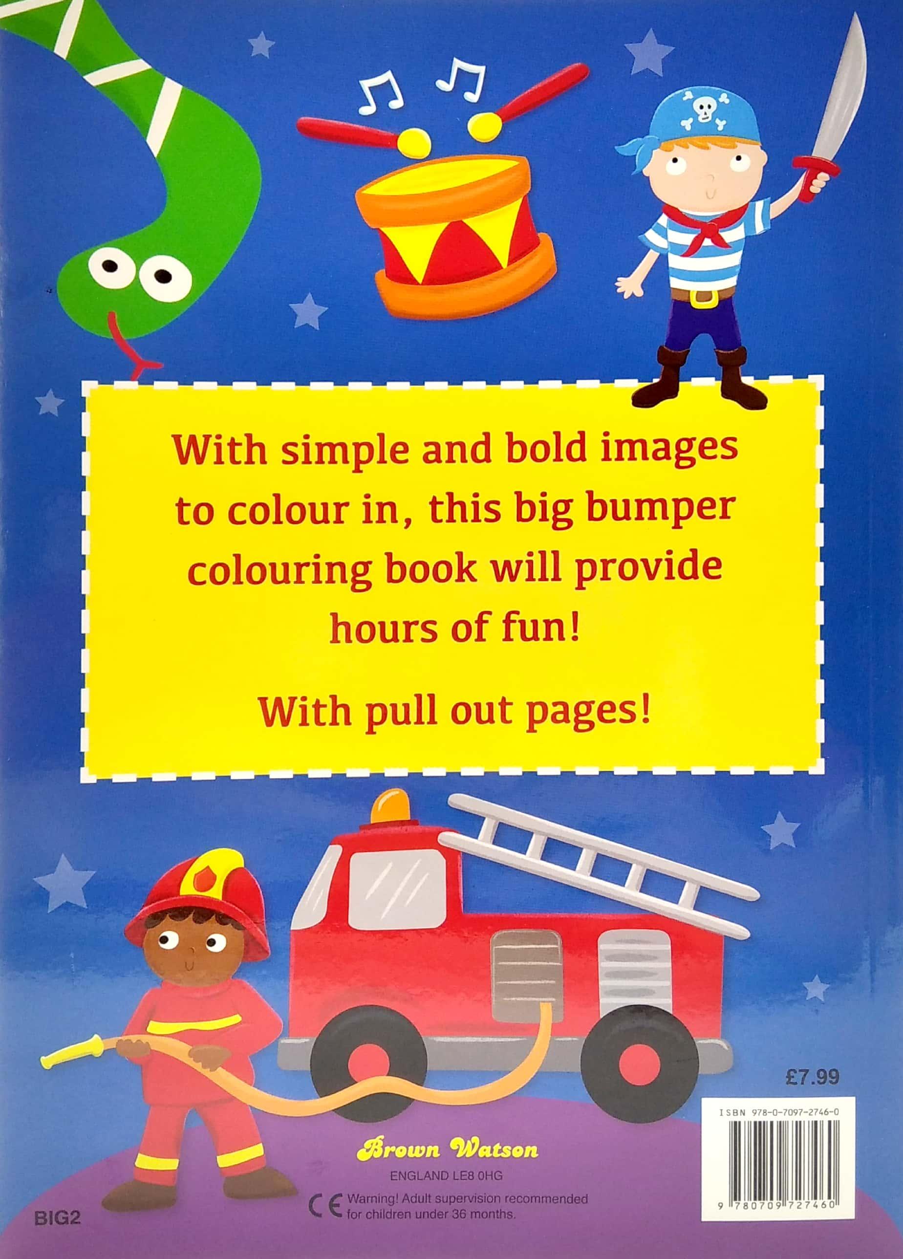 With simple and bold images to colour in, this big bumper colouring book will provide hours of fun!