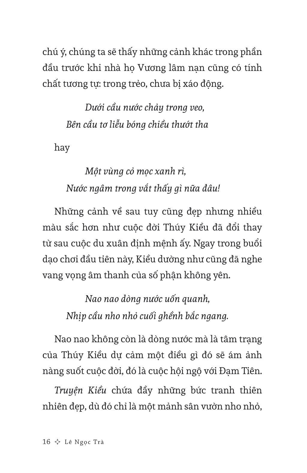 “Ði chệch ra khỏi đại lộ của nền văn học “tải đạo”, rẽ sang con đường đến với sáng tác như một hành động quan sát, nghiền ngẫm, chiêm nghiệm, giãi bày mà đồng thời vẫn kế thừa được tính quan niệm, chất triết lí của văn chương truyền thống – đó là thiên tài đột xuất của Nguyễn Du, khiến Nguyễn Du trở thành nhà văn “kiểu mới” và Truyện Kiều về phương diện này rất gần với tư duy nghệ thuật hiện đại. Cao Bá Quát quả là hết sức sắc sảo và có lý khi nhận xét rằng: “Kim Vân Kiều là tiếng nói ‘hiểu đời’. Hoa Tiên là tiếng nói ‘răn đời’ vậy”.