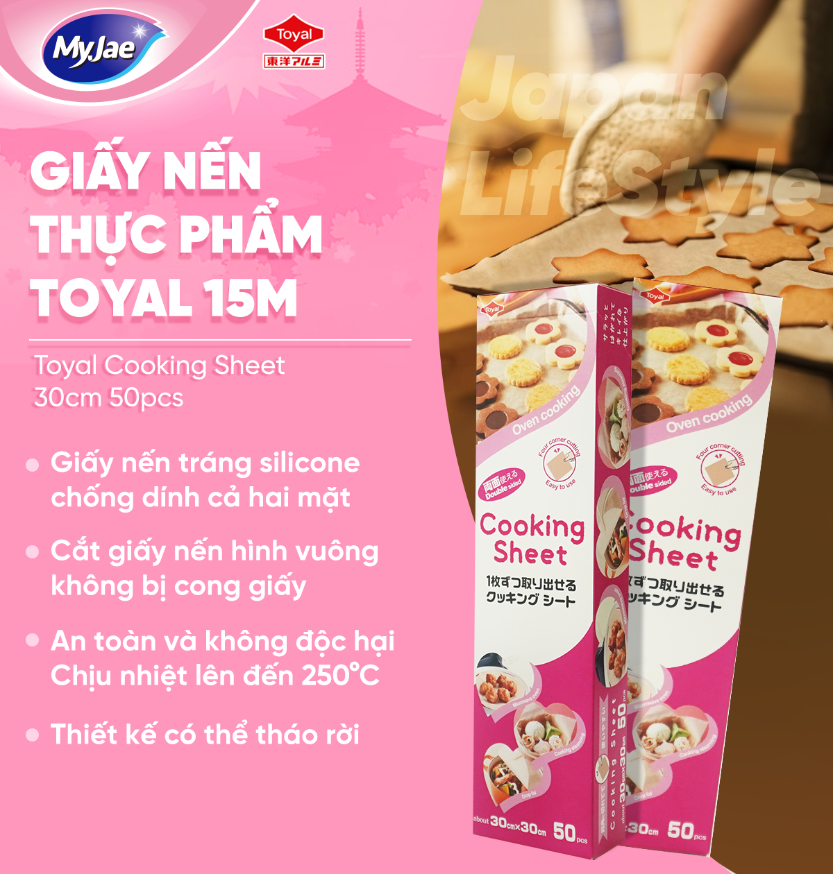✨[MyJae x Toyal] Giấy Nến 2 Mặt Lót Nồi Chiên, Nướng Bánh, Giấy Lót Chống Dính 30cm x 30cm (50 Tờ/Hộp)
