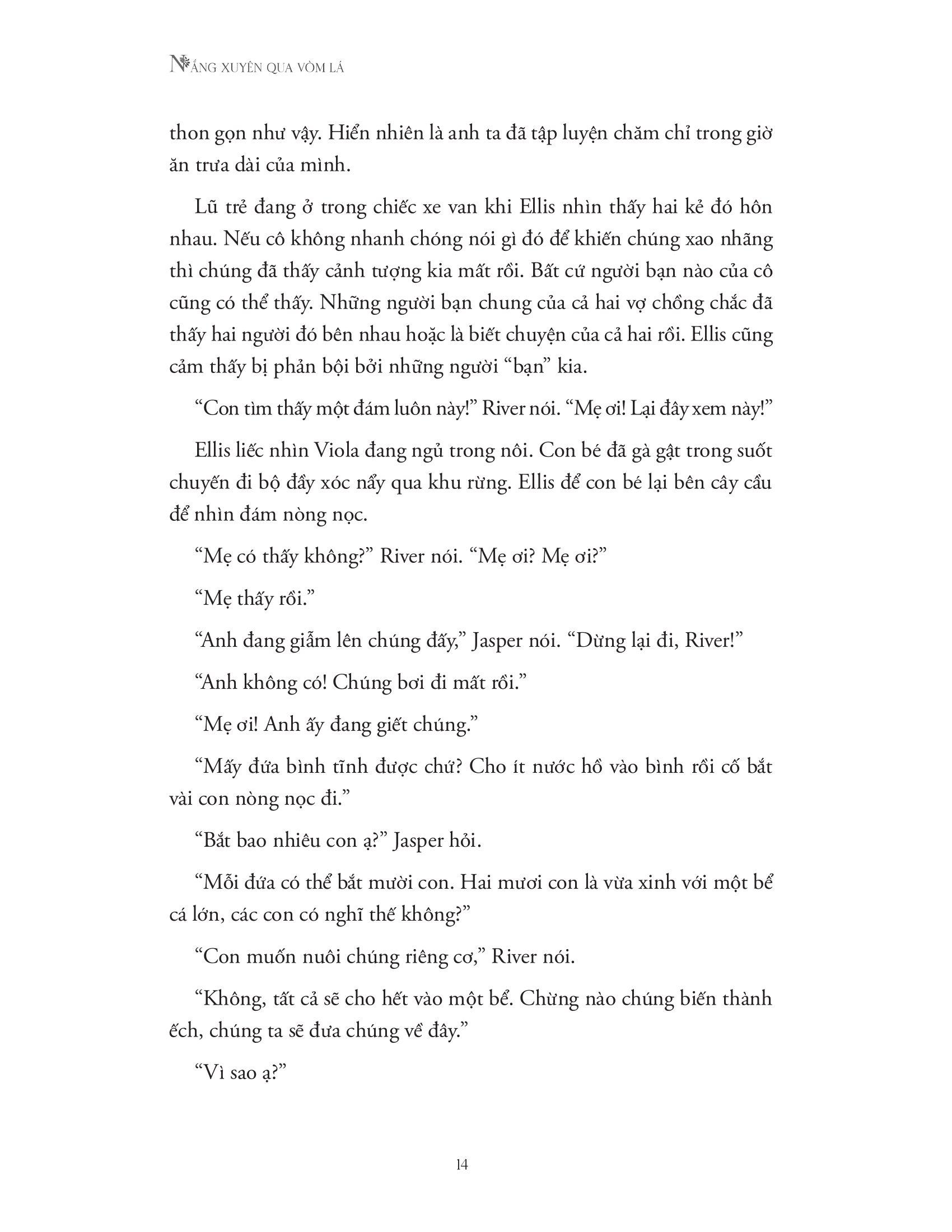 Sau Nơi khu rừng chạm tới những vì sao, Glendy Vanderah (tác giả sách bán chạy theo bình chọn của Wall Street Journal) đã tiếp nối những cảm xúc thứ tha và chữa lành ấy bằng một cuốn tiểu thuyết tuyệt diệu về tình yêu, sự mất mát và hành trình khám phá bản thân, The light through the leaves.