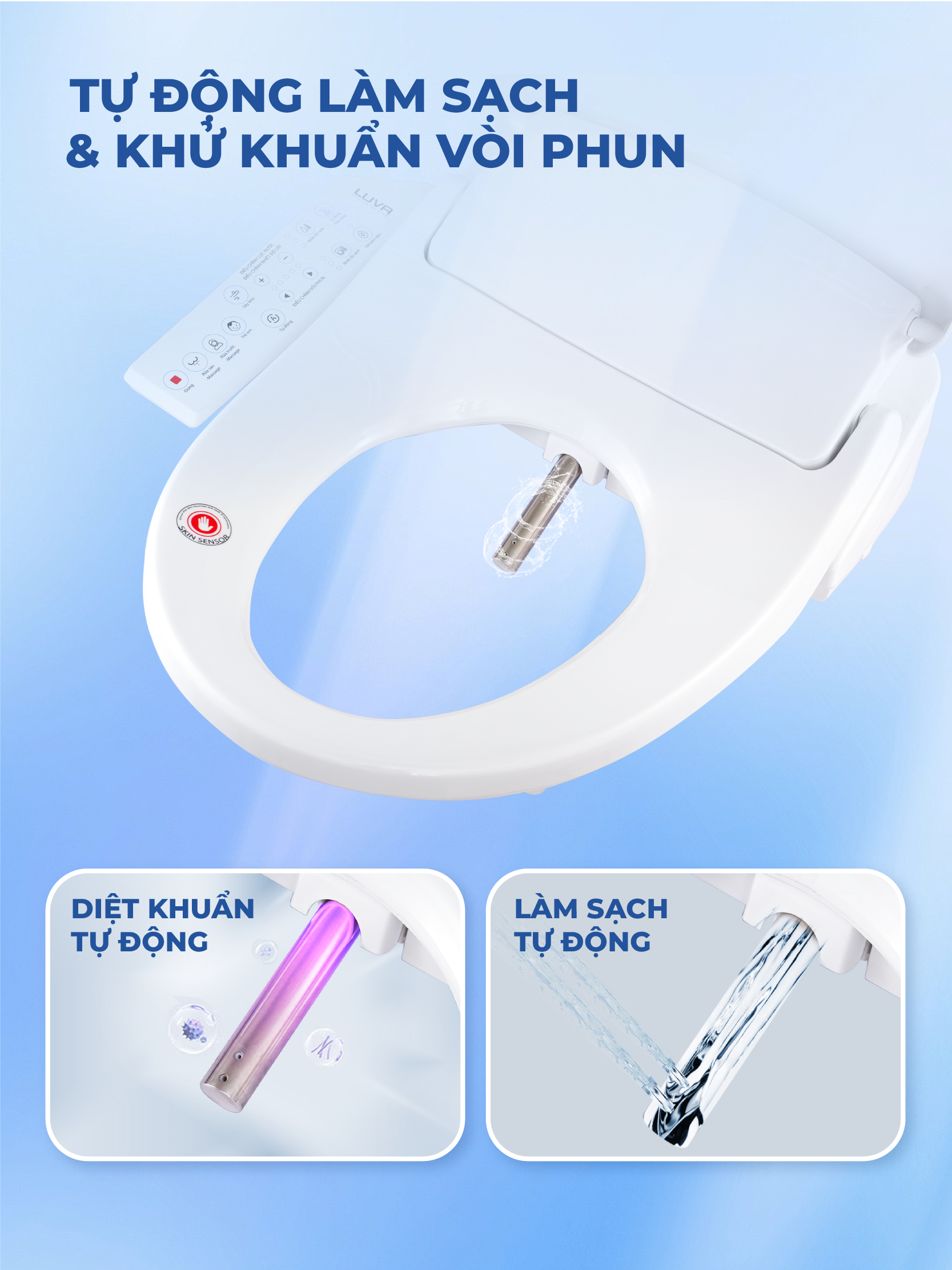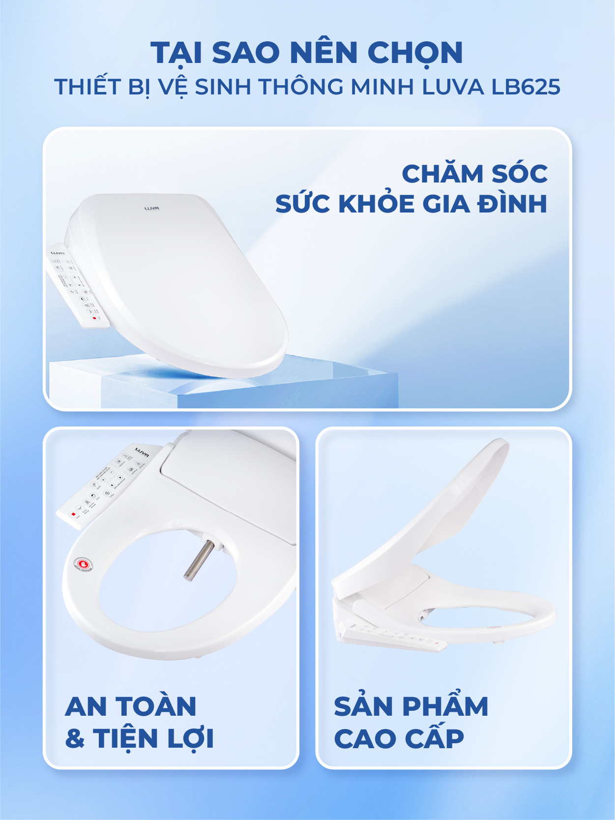 Nắp Bồn Cầu Điện Tử LUVA LB625, Bảng Điều Khiển Cảm Ứng Tiếng Việt