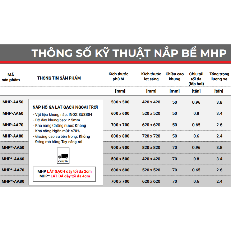 ✨Nắp hố ga Zavak MHP-AA60 KT60x60cm, lát đá dày 2cm, chịu tải xe 3.2 tấn, inox 304