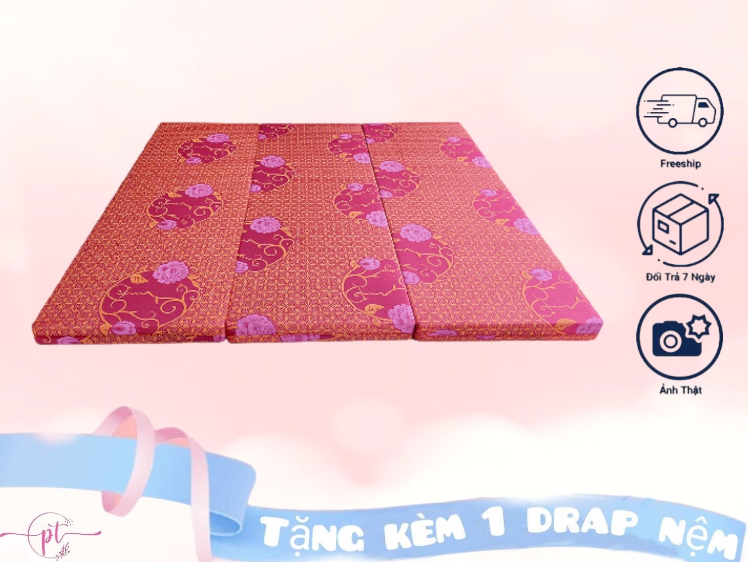 Mua tại TiktokĐược sản xuất từ sợi bông polyeste cao cấp và dây chuyền công nghệ Hàn Quốc tiên tiến nhất hiện nay, nệm bông ép gấp 3 đạt những tiêu chuẩn quốc tế về sự êm