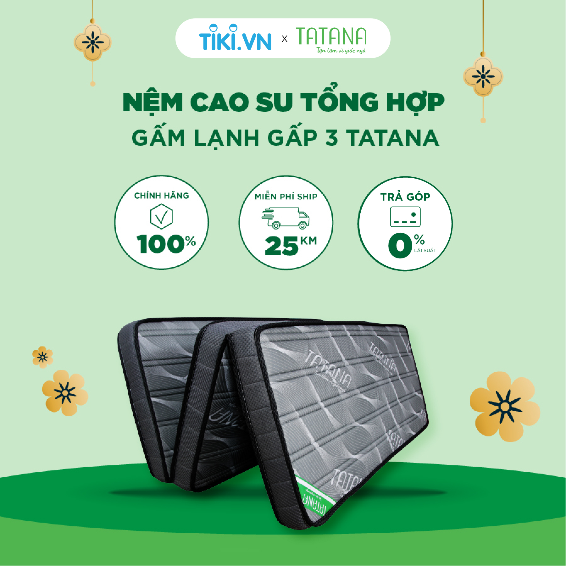 ✨Nệm Cao Su Tổng Hợp Vải Gấm Lạnh Gấp 3 Tatana