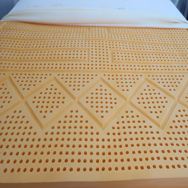 Nệm cao su Gold Latex Gấp 3 được sản xuất từ thành phần nguyên liệu 50% Cao Su kết hợp với 50% Memory Foam. Thiết kế 1 mặt lỗ tròn nhỏ và 1 mặt lỗ vuông tạo độ thoáng