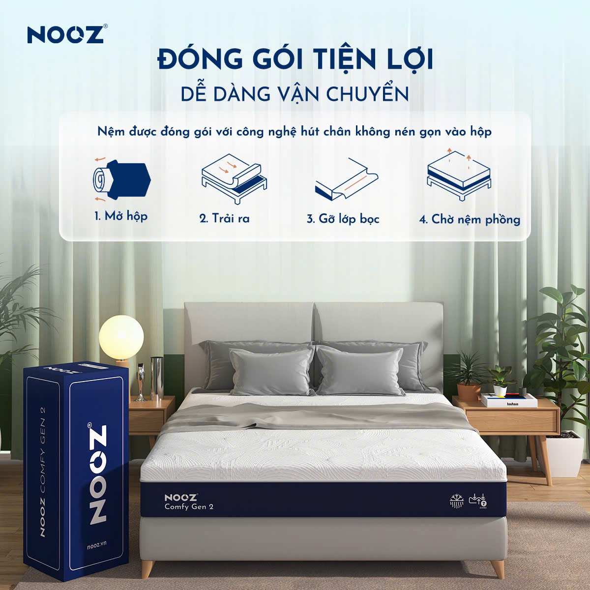 ✨Nệm Foam NOOZ Comfy Gen 2 25cm Đệm Cao Su Thiên Nhiên Và Tầng Foam 7 Vùng Nâng Đỡ NOOZ Home Goods