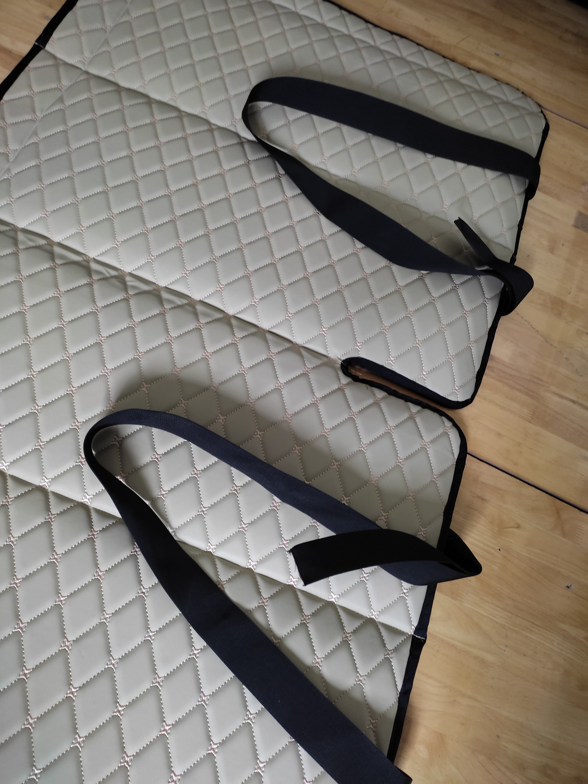 - Lót Gỗ MDF, Chịu lực lên đến 500kg - Bảo hành 2 năm, nhận GIA CÔNG RIÊNG theo yêu cầu khách. CÁCH LẮP ĐẶT: - Trải nệm lên hàng ghế sau - treo 2 dây đai lên 2 ghế phía trước, thắt khóa điều chỉnh độ dài dây đai phù hợp với xe. Nệm là mặt phẳng được cố định chắc chắn, chịu lực 500kg. - Gấp gọn làm 4 khi không sử dụng.