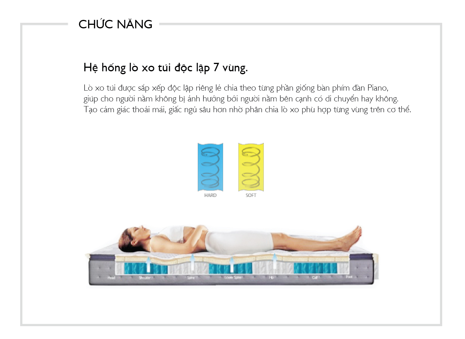 - Lò xo độc lập 7 vùng Multiflex