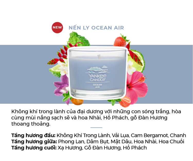 Nến ly tròn sáp đậu nành Yankee Candle size L (567g) - Ocean Air  Nến ly tròn sáp đậu nành Yankee Candle size L (567g) - Sage & Citrus